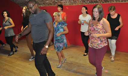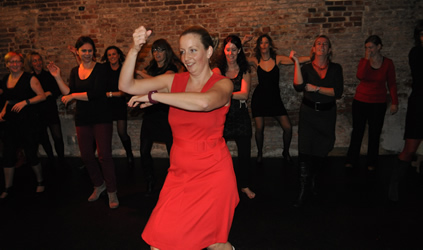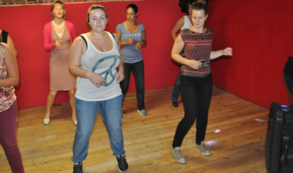 Gaandeweg de workshop worden de passen en combinaties ingewikkelder tot we aan het eind van de workshop tot een choreografische dans komen.